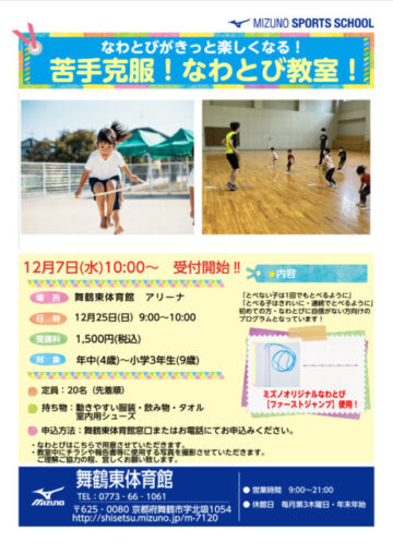 12月25日(日)9:00~10:00に舞鶴東体育館にて苦手克服!なわとび教室を開催します! …