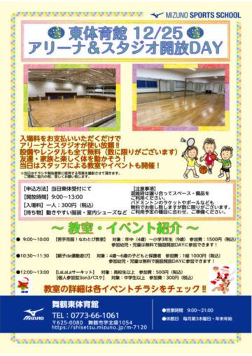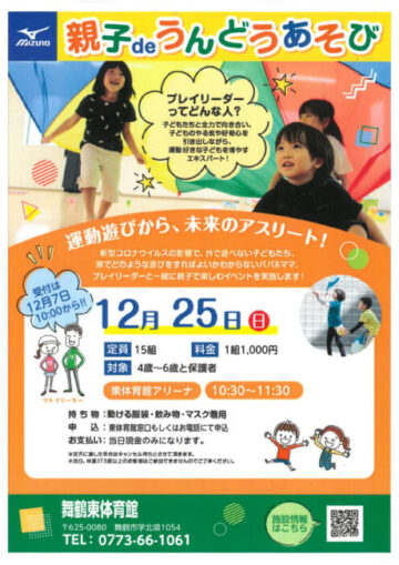 12月25日(日)10:30~11:30より舞鶴東体育館にて親子deうんどうあそびを開催します! …