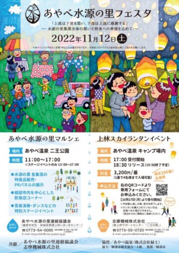 あやべ水源の里集落と志摩機械株式会社が連携し「あやべ水源の里フェスタ」を開催します。 水源の里マル…