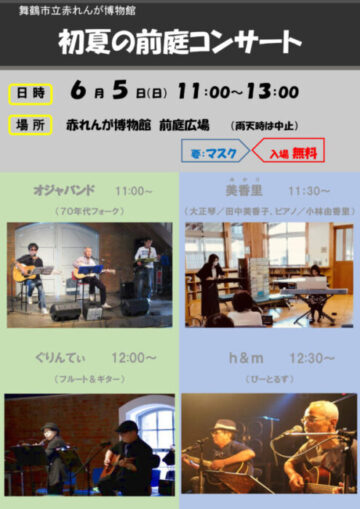 【「初夏の前庭コンサート」を開催します】 入場無料です。日焼け対策をバッチリしてお…