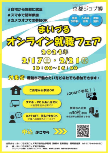 #自宅から気軽に就活 #スマホで簡単参加 #カメラオフでの参加OK 舞鶴市で働きたい方どな…