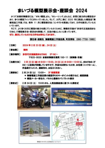 まいづる模型展示会・座談会 プラモデルなどの模型を展示します! 24日13時~15時は、模型につ…