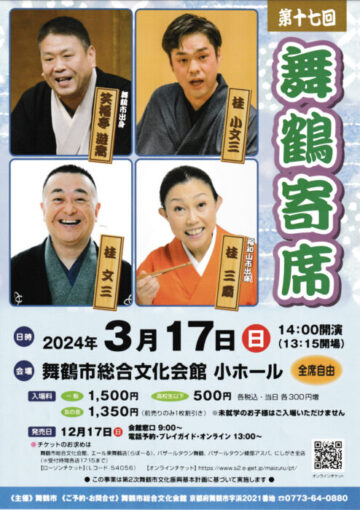 第十七回 舞鶴寄席 毎年恒例「舞鶴寄席」を開催します。ぜひご来場ください。 チケット前売り 舞…