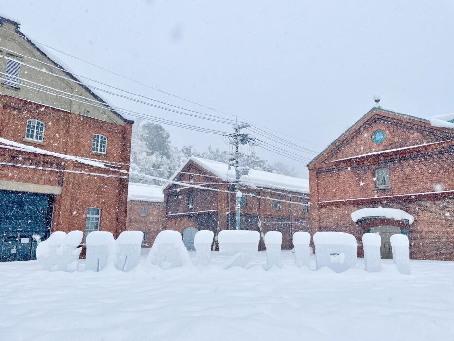 赤れんがと白い文字のコントラストが美しいこの場所。
